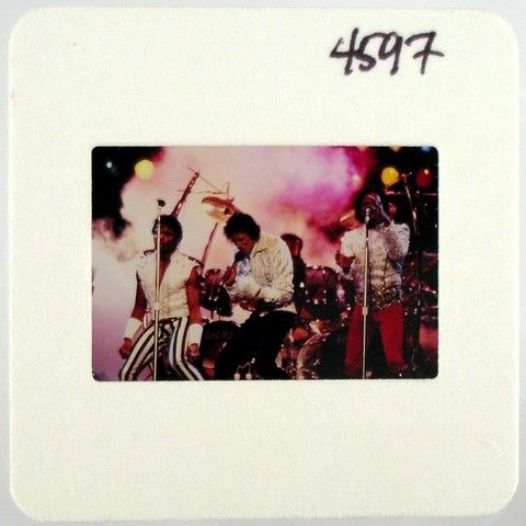 Michael Jackson "melds" in with his beloved brothers as they did a million times before as they perform at their reunion world tour: the Victory Tour circa 1984. These photos were commission by Joe Jackson, father, founder and early manager of his children, Michael Jackson and the Jackson 5. He hired the top music concert photographers of the day to take pictures of Michael Jackson and the Jackson Five (both in individual performances and as a group), while they were on tour, and during personal appearances, as well as at family get-together's. The purchase of this photo includes the original transparency, and includes a full copyright release for your own personal unlimited reproduction printing and selling to the winning bidder. They are the original 35 millimeter film used to take the picture, and are professionally mounted in “slide” paper for protection. The original film sprockets can be seen when the paper is removed. The color reversal film was used by these photographers, because, as is standard in the industry, this film stock creates more detailed images especially in Concert and low-light situations, and in many ways is actually superior to color negative film stock for reproduction purposes. Bidders are advised that Jackson Entertainment Corp. and the Estate of Michael Jackson have asserted a claim that they are the owners of the copyright in this photo and/or rights to the reproduction of Michael Jackson’s image. Bidders are advised that all proceeds from sales and delivery of the purchased items will be held by Premiere Props in escrow pending resolution of these claims unless the successful bidders assume the risk.
