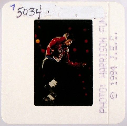 Michael Jackson does his magic wherein he seems to defy gravity during his performance at his world-wide Victory Tour circa 1984. These photos were commission by Joe Jackson, father, founder and early manager of his children, Michael Jackson and the Jackson 5. He hired the top music concert photographers of the day to take pictures of Michael Jackson and the Jackson Five (both in individual performances and as a group), while they were on tour, and during personal appearances, as well as at family get-together's. The purchase of this photo includes the original transparency, and includes a full copyright release for your own personal unlimited reproduction printing and selling to the winning bidder. They are the original 35 millimeter film used to take the picture, and are professionally mounted in “slide” paper for protection. The original film sprockets can be seen when the paper is removed. The color reversal film was used by these photographers, because, as is standard in the industry, this film stock creates more detailed images especially in Concert and low-light situations, and in many ways is actually superior to color negative film stock for reproduction purposes. Bidders are advised that Jackson Entertainment Corp. and the Estate of Michael Jackson have asserted a claim that they are the owners of the copyright in this photo and/or rights to the reproduction of Michael Jackson’s image. Bidders are advised that all proceeds from sales and delivery of the purchased items will be held by Premiere Props in escrow pending resolution of these claims unless the successful bidders assume the risk.