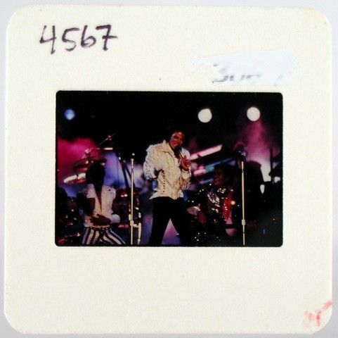 Michael Jackson takes total control of this photo as he does the stage during his Victory Tour circa 1984. These photos were commission by Joe Jackson, father, founder and early manager of his children, Michael Jackson and the Jackson 5. He hired the top music concert photographers of the day to take pictures of Michael Jackson and the Jackson Five (both in individual performances and as a group), while they were on tour, and during personal appearances, as well as at family get-together's. The purchase of this photo includes the original transparency, and includes a full copyright release for your own personal unlimited reproduction printing and selling to the winning bidder. They are the original 35 millimeter film used to take the picture, and are professionally mounted in “slide” paper for protection. The original film sprockets can be seen when the paper is removed. The color reversal film was used by these photographers, because, as is standard in the industry, this film stock creates more detailed images especially in Concert and low-light situations, and in many ways is actually superior to color negative film stock for reproduction purposes. Bidders are advised that Jackson Entertainment Corp. and the Estate of Michael Jackson have asserted a claim that they are the owners of the copyright in this photo and/or rights to the reproduction of Michael Jackson’s image. Bidders are advised that all proceeds from sales and delivery of the purchased items will be held by Premiere Props in escrow pending resolution of these claims unless the successful bidders assume the risk.