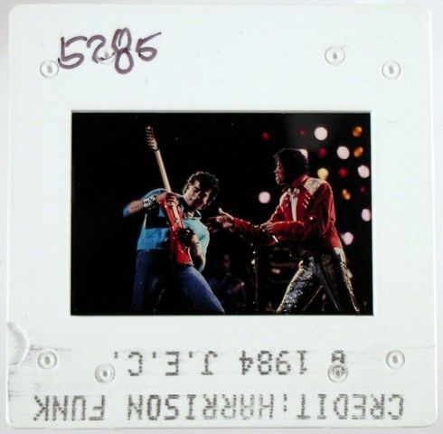 Michael Jackson seems to conjure up by magic the sounds that burst off the stage during his Victory Tour circa 1984. These photos were commission by Joe Jackson, father, founder and early manager of his children, Michael Jackson and the Jackson 5. He hired the top music concert photographers of the day to take pictures of Michael Jackson and the Jackson Five (both in individual performances and as a group), while they were on tour, and during personal appearances, as well as at family get-together's. The purchase of this photo includes the original transparency, and includes a full copyright release for your own personal unlimited reproduction printing and selling to the winning bidder. They are the original 35 millimeter film used to take the picture, and are professionally mounted in “slide” paper for protection. The original film sprockets can be seen when the paper is removed. The color reversal film was used by these photographers, because, as is standard in the industry, this film stock creates more detailed images especially in Concert and low-light situations, and in many ways is actually superior to color negative film stock for reproduction purposes. Bidders are advised that Jackson Entertainment Corp. and the Estate of Michael Jackson have asserted a claim that they are the owners of the copyright in this photo and/or rights to the reproduction of Michael Jackson’s image. Bidders are advised that all proceeds from sales and delivery of the purchased items will be held by Premiere Props in escrow pending resolution of these claims unless the successful bidders assume the risk.