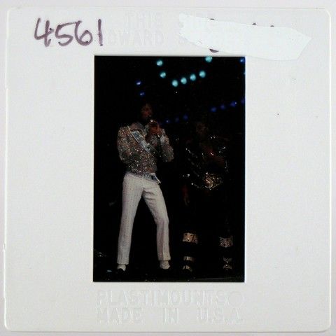 Michael Jackson is joined by his brother Jermaine during the Victory Tour circa 1984. These photos were commission by Joe Jackson, father, founder and early manager of his children, Michael Jackson and the Jackson 5. He hired the top music concert photographers of the day to take pictures of Michael Jackson and the Jackson Five (both in individual performances and as a group), while they were on tour, and during personal appearances, as well as at family get-together's. The purchase of this photo includes the original transparency, and includes a full copyright release for your own personal unlimited reproduction printing and selling to the winning bidder. They are the original 35 millimeter film used to take the picture, and are professionally mounted in “slide” paper for protection. The original film sprockets can be seen when the paper is removed. The color reversal film was used by these photographers, because, as is standard in the industry, this film stock creates more detailed images especially in Concert and low-light situations, and in many ways is actually superior to color negative film stock for reproduction purposes. Bidders are advised that Jackson Entertainment Corp. and the Estate of Michael Jackson have asserted a claim that they are the owners of the copyright in this photo and/or rights to the reproduction of Michael Jackson’s image. Bidders are advised that all proceeds from sales and delivery of the purchased items will be held by Premiere Props in escrow pending resolution of these claims unless the successful bidders assume the risk.