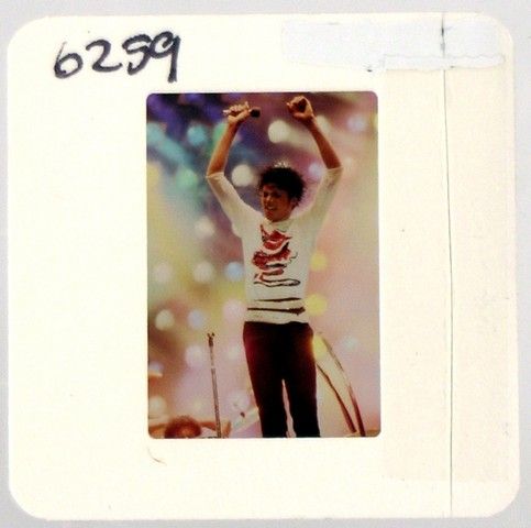 Michael Jackson front and center surrounded by his brothers, friends and other family members as he receives an award during his Victory Tour circa 1984. These photos were commission by Joe Jackson, father, founder and early manager of his children, Michael Jackson and the Jackson 5. He hired the top music concert photographers of the day to take pictures of Michael Jackson and the Jackson Five (both in individual performances and as a group), while they were on tour, and during personal appearances, as well as at family get-together's. The purchase of this photo includes the original transparency, and includes a full copyright release for your own personal unlimited reproduction printing and selling to the winning bidder. They are the original 35 millimeter film used to take the picture, and are professionally mounted in “slide” paper for protection. The original film sprockets can be seen when the paper is removed. The color reversal film was used by these photographers, because, as is standard in the industry, this film stock creates more detailed images especially in Concert and low-light situations, and in many ways is actually superior to color negative film stock for reproduction purposes. Bidders are advised that Jackson Entertainment Corp. and the Estate of Michael Jackson have asserted a claim that they are the owners of the copyright in this photo and/or rights to the reproduction of Michael Jackson’s image. Bidders are advised that all proceeds from sales and delivery of the purchased items will be held by Premiere Props in escrow pending resolution of these claims unless the successful bidders assume the risk.