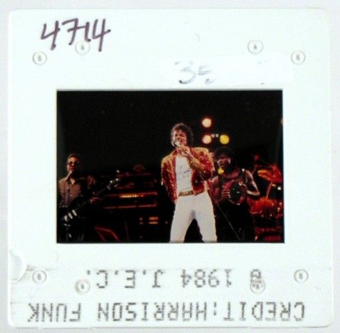 Michael Jackson about to tear apart from his brothers for a solo number during his Victory Tour circa 1984. These photos were commission by Joe Jackson, father, founder and early manager of his children, Michael Jackson and the Jackson 5. He hired the top music concert photographers of the day to take pictures of Michael Jackson and the Jackson Five (both in individual performances and as a group), while they were on tour, and during personal appearances, as well as at family get-together's. The purchase of this photo includes the original transparency, and includes a full copyright release for your own personal unlimited reproduction printing and selling to the winning bidder. They are the original 35 millimeter film used to take the picture, and are professionally mounted in “slide” paper for protection. The original film sprockets can be seen when the paper is removed. The color reversal film was used by these photographers, because, as is standard in the industry, this film stock creates more detailed images especially in Concert and low-light situations, and in many ways is actually superior to color negative film stock for reproduction purposes. Bidders are advised that Jackson Entertainment Corp. and the Estate of Michael Jackson have asserted a claim that they are the owners of the copyright in this photo and/or rights to the reproduction of Michael Jackson’s image. Bidders are advised that all proceeds from sales and delivery of the purchased items will be held by Premiere Props in escrow pending resolution of these claims unless the successful bidders assume the risk.