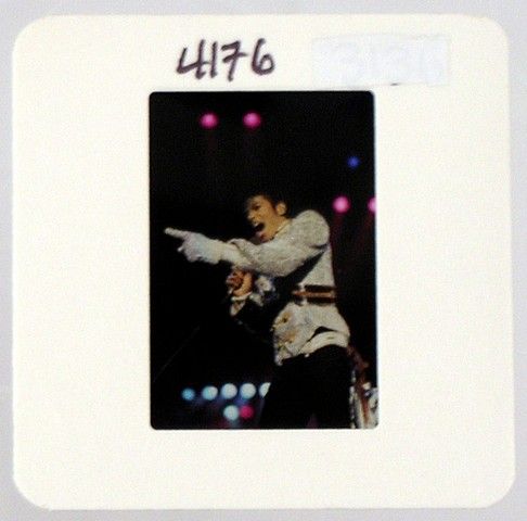 A strong and brilliantly composed shot of Michael Jackson in complete control of the moment during his legendary Victory Tour circa 1984. These photos were commission by Joe Jackson, father, founder and early manager of his children, Michael Jackson and the Jackson 5. He hired the top music concert photographers of the day to take pictures of Michael Jackson and the Jackson Five (both in individual performances and as a group), while they were on tour, and during personal appearances, as well as at family get-together's. The purchase of this photo includes the original transparency, and includes a full copyright release for your own personal unlimited reproduction printing and selling to the winning bidder. They are the original 35 millimeter film used to take the picture, and are professionally mounted in “slide” paper for protection. The original film sprockets can be seen when the paper is removed. The color reversal film was used by these photographers, because, as is standard in the industry, this film stock creates more detailed images especially in Concert and low-light situations, and in many ways is actually superior to color negative film stock for reproduction purposes. Bidders are advised that Jackson Entertainment Corp. and the Estate of Michael Jackson have asserted a claim that they are the owners of the copyright in this photo and/or rights to the reproduction of Michael Jackson’s image. Bidders are advised that all proceeds from sales and delivery of the purchased items will be held by Premiere Props in escrow pending resolution of these claims unless the successful bidders assume the risk.