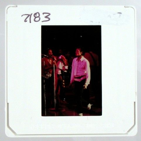 Michael Jackson in Concert with the Jackson 5 on their Victory Tour circa 1983. These photos were commission by Joe Jackson, father, founder and early manager of his children, Michael Jackson and the Jackson 5. He hired the top music concert photographers of the day to take pictures of Michael Jackson and the Jackson Five (both in individual performances and as a group), while they were on tour, and during personal appearances, as well as at family get-together's. The purchase of this photo includes the original transparency, and includes a full copyright release for your own personal unlimited reproduction printing and selling to the winning bidder. They are the original 35 millimeter film used to take the picture, and are professionally mounted in “slide” paper for protection. The original film sprockets can be seen when the paper is removed. The color reversal film was used by these photographers, because, as is standard in the industry, this film stock creates more detailed images especially in Concert and low-light situations, and in many ways is actually superior to color negative film stock for reproduction purposes. Bidders are advised that Jackson Entertainment Corp. and the Estate of Michael Jackson have asserted a claim that they are the owners of the copyright in this photo and/or rights to the reproduction of Michael Jackson’s image. Bidders are advised that all proceeds from sales and delivery of the purchased items will be held by Premiere Props in escrow pending resolution of these claims unless the successful bidders assume the risk.
