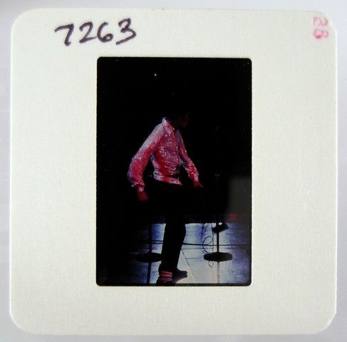 Michael Jackson introducing one of his iconic dance moves as he takes the stage on his Victory Tour circa 1983. These photos were commission by Joe Jackson, father, founder and early manager of his children, Michael Jackson and the Jackson 5. He hired the top music concert photographers of the day to take pictures of Michael Jackson and the Jackson Five (both in individual performances and as a group), while they were on tour, and during personal appearances, as well as at family get-together's. The purchase of this photo includes the original transparency, and includes a full copyright release for your own personal unlimited reproduction printing and selling to the winning bidder. They are the original 35 millimeter film used to take the picture, and are professionally mounted in “slide” paper for protection. The original film sprockets can be seen when the paper is removed. The color reversal film was used by these photographers, because, as is standard in the industry, this film stock creates more detailed images especially in Concert and low-light situations, and in many ways is actually superior to color negative film stock for reproduction purposes. Bidders are advised that Jackson Entertainment Corp. and the Estate of Michael Jackson have asserted a claim that they are the owners of the copyright in this photo and/or rights to the reproduction of Michael Jackson’s image. Bidders are advised that all proceeds from sales and delivery of the purchased items will be held by Premiere Props in escrow pending resolution of these claims unless the successful bidders assume the risk.