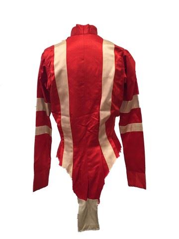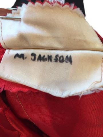 Michael Jackson concert worn, custom made, red and cream striped silk, button down bodysuit