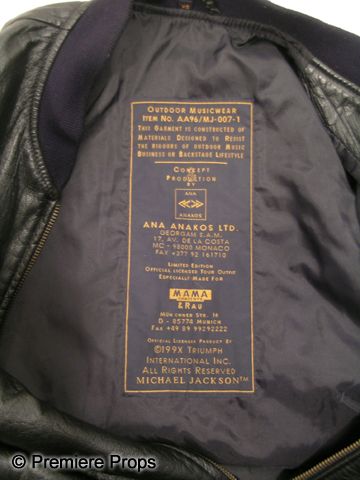 For fans of the King of Pop, this is a jacket commemorating Michael Jackson's 1996 'HIStory' World tour. The HIStory tour was the third and final worldwide solo concert tour by Jackson, which included 82 concerts on 5 different continents. The jacket is black leather, with a 'King Of Pop Michael Jackson History World Tour' patch on left shoulder and a large 'MJ' patch sewn on the back. The label inside reads in part 'Outdoor Musicwear 199X Triumph Michael Jackson.' (size XS).