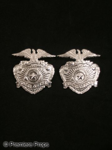 Attention Michael Jackson fans and impersonators. This is a pair of steel 'security' badges that were worn by a Michael Jackson impersonator, reminiscent of the one used during his 'Bad' World tour in 1987. The badges are engraved 'Special Officer' and feature an Eagle resting atop a crest with a large star in the center. The badges are to be fastened to clothing with small nuts, which are not present. (measures approx. 2 1/2"x 2 1/4" ea.)
