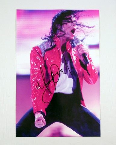 Michael Jackson Signed Concert Photo - A spectacular signed photo of Michael Jackson in concert at the height of his powers. The photo comes with signed Certificate of Authenticity with a hologram seal from Autographworld. (Signed color concert photo is 8"x10").