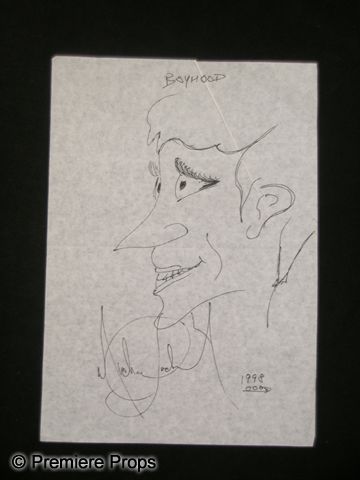From the legendary King of Pop. This is a sketch made by Michael Jackson himself in 1998. The drawing features the smiling face of a boy with 'Boyhood' written above his head, and is signed by MJ in the lower left corner, adding '1998' and an image of three circles above a pointed arrow. Obtaining autographs of Michael Jackson are often difficult enough, but to have a one-of-a-kind hand drawn image from this amazing performer is incredible! (measures approx. 8"x 11")