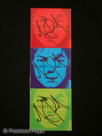 This is a lot of (3) CD cover/booklets featuring the signatures of the unequivocal King of Pop, Michael Jackson. The booklets are all from the 2001 release of his tenth and last studio album 'Invincible.' Each booklet is a different color, though the contents are the same, and was signed in London in 2006. All three signatures are in black ink. With his untimely passing in 2009, autographed Michael Jackson memorabilia is becoming some of the most sought after collectibles from this incredible artist. (measures approx. 4 3/4"x 4 3/4" ea.)