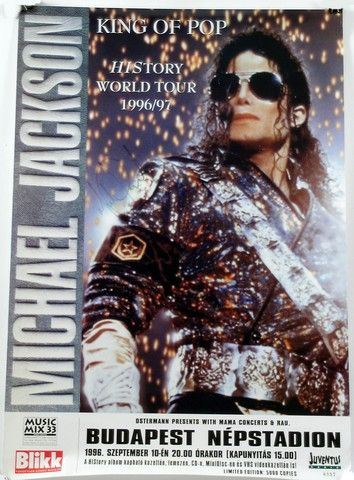 Limited Edition Budapest HIStory World Tour poster from Sept 1996 signed by Michael Jackson during his visitation in Budapest. Only 5000 pieces made.