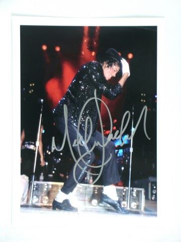 A magnificent color photo of Michael Jackson performing perhaps his most iconic song ever, Billie Jean. Signed photos of MJ performing on stage are rarer and therefore more desirable than publicity photos and headshots. (Approx 6"x8").