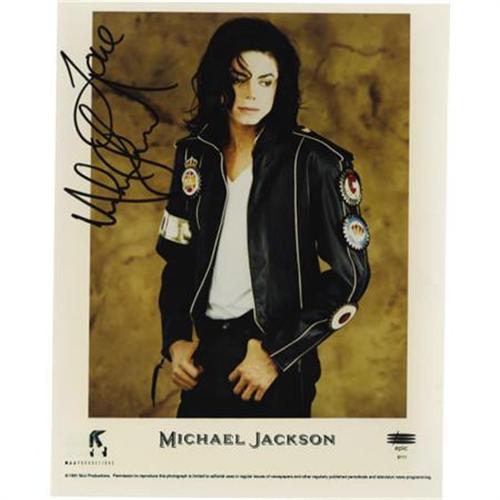 <B>Michael Jackson Signed Photo.</B></I> A color 8" x 10" photo of the King of Pop circa 1991, signed by him in black marker. In Excellent condition.<BR><BR><b>Shipping:</b> Flat Material, Small (<a target="_blank" href="http://www.heritageauctions.com/common/shipping.php">view shipping information</a>)