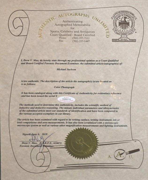 She's Out of My Life Michael Jackson Signed Sheet Music - A.A.U. Authenticated. 9x12 inches. HL17625.