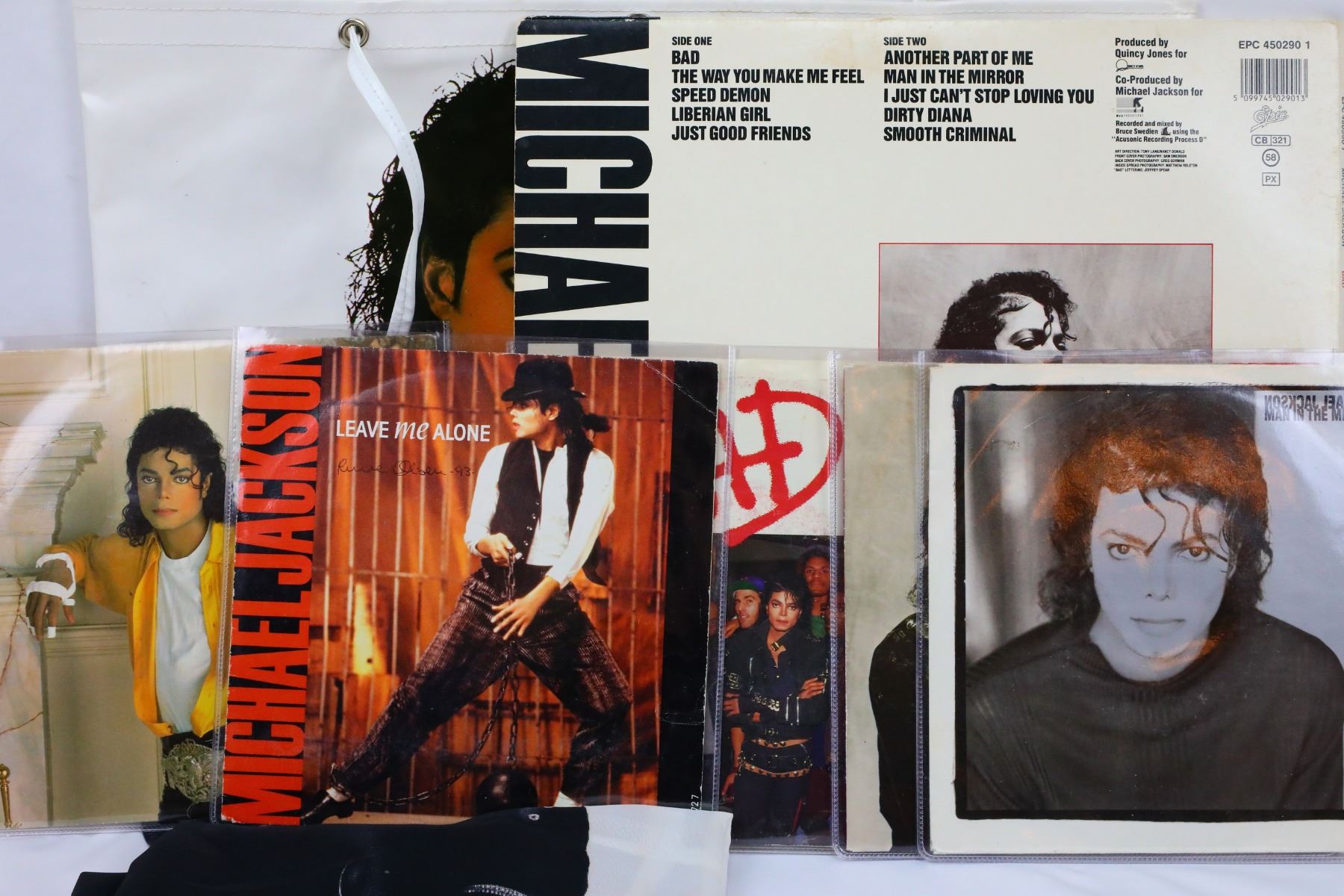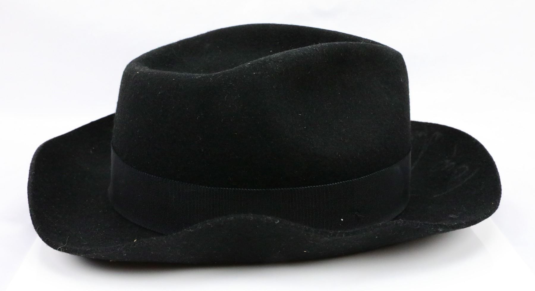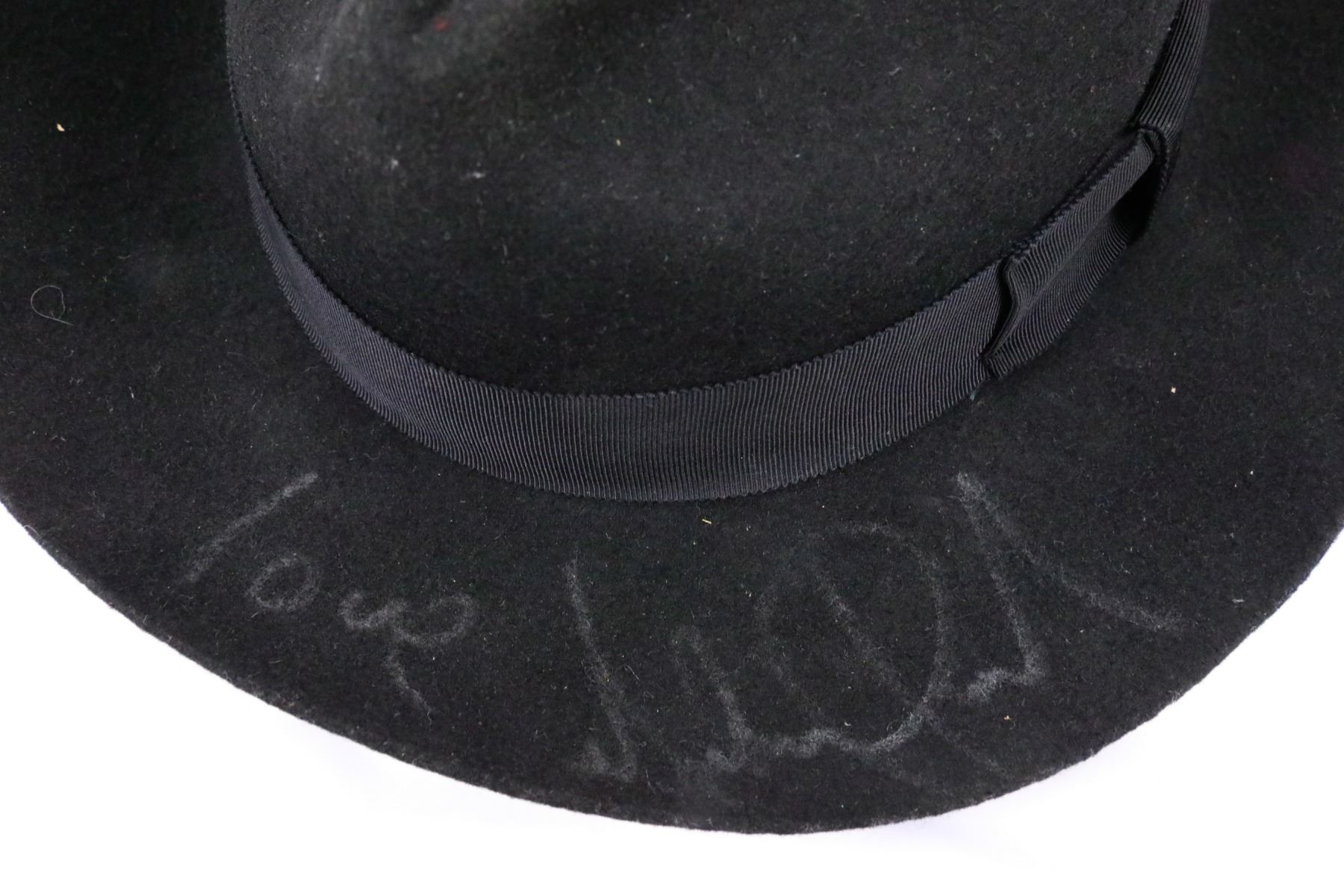 Michael Jackson Signed Stage Worn Custom Black Fedora From Bad Tour Era W/Letter From MJJ Productions & Bad Album Memorabilia - This custom black fedora was personally owned and stage worn by the King of Pop, Michael Jackson. This instantly recognizable piece of iconic memorabilia is size large, and is embossed with Michael Jackson's name in gold lettering on the inner brim. The fedora was signed by Michael Jackson in silver marker on the outside brim, and will be accompanied by a letter of provanance from MJJ Productions dated June 1989, which states that Michael personally signed the fedora for a fan to include in a charity auction. The Bad World Tour was Michael Jackson's first solo concert tour which was launched in 1987 in support of his seventh studio album "Bad". The tour ended on January 27, 1989, and was recognized by Guinness World Records as the largest grossing tour in history and the tour to play to the most people ever. This lot will also include (5) 45 records with singles from the Bad album, Bad vinyl album, a promotional tote bag printed with album photo and a polyester wall hanging. If you would like more information regarding the provenance or authenticity of this piece, please email brigitte@gwsauctions.com.