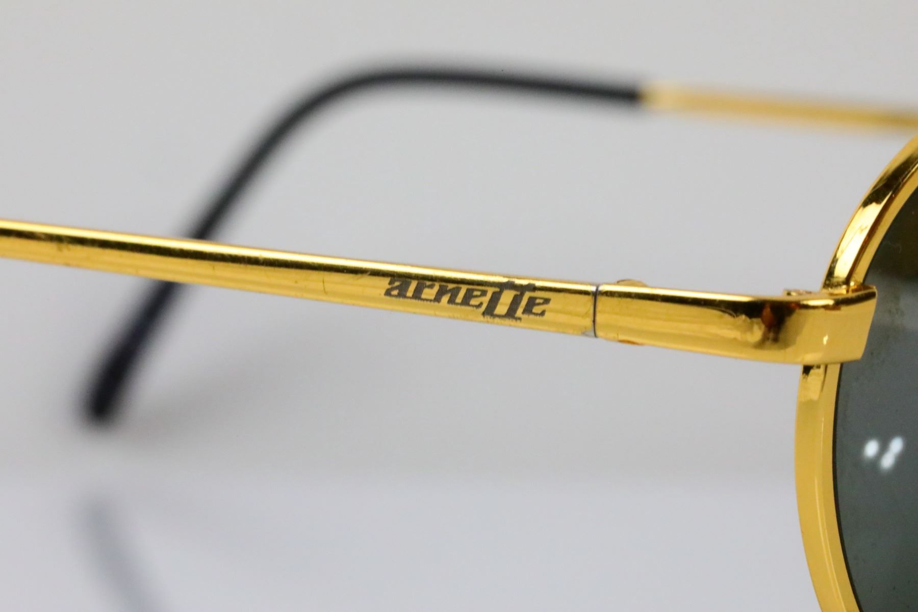 Michael Jackson's Arnette Sunglasses Given to Corey Feldman W/COA & Letter From Feldman - These sunglasses were owned by Michael Jackson and were given to actor Corey Feldman. The Arnette glasses have a gold frame and black lenses, and will come with a carrying case. According to the letter from Corey Feldman, these glasses were given to him by Tim Stinson (from the marketing management company Lyon/Stinson Entertainment Marketing), which was in charge of marketing for Michael Jackson's Victory and Bad tours, along with his official fan club. The letter states that Stinson was in charge of a marketing sweepstakes which provided contestants the opportunity to win sunglasses that Michael Jackson wore, and this was the only pair which was not given out. This special piece is a symbol of a friendship between two Hollywood entertainers. Corey Feldman is an American actor and singer, who became well known during the 1980s with roles as a youth in films such as "Gremlins", "The Goonies" and "Stand by Me". Michael Jackson became a friend and mentor to Corey Feldman after his rising notoriety.