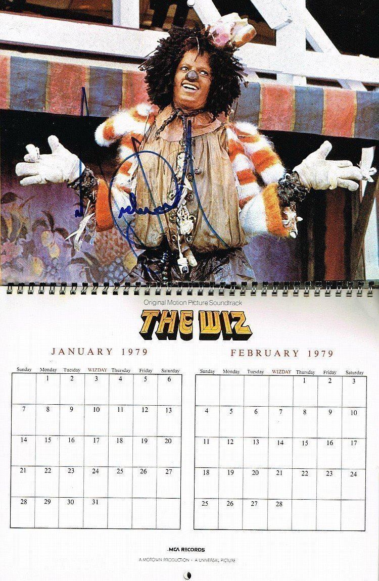 A Michael Jackson signed 1979 calendar with images from the motion picture The Wiz (Motown Productions, 1978). Jackson signed the back of the calendar in blue ink. 7 1/4 by 9 inches. Condition Report: Good. Global authenticators sticker on calendar.