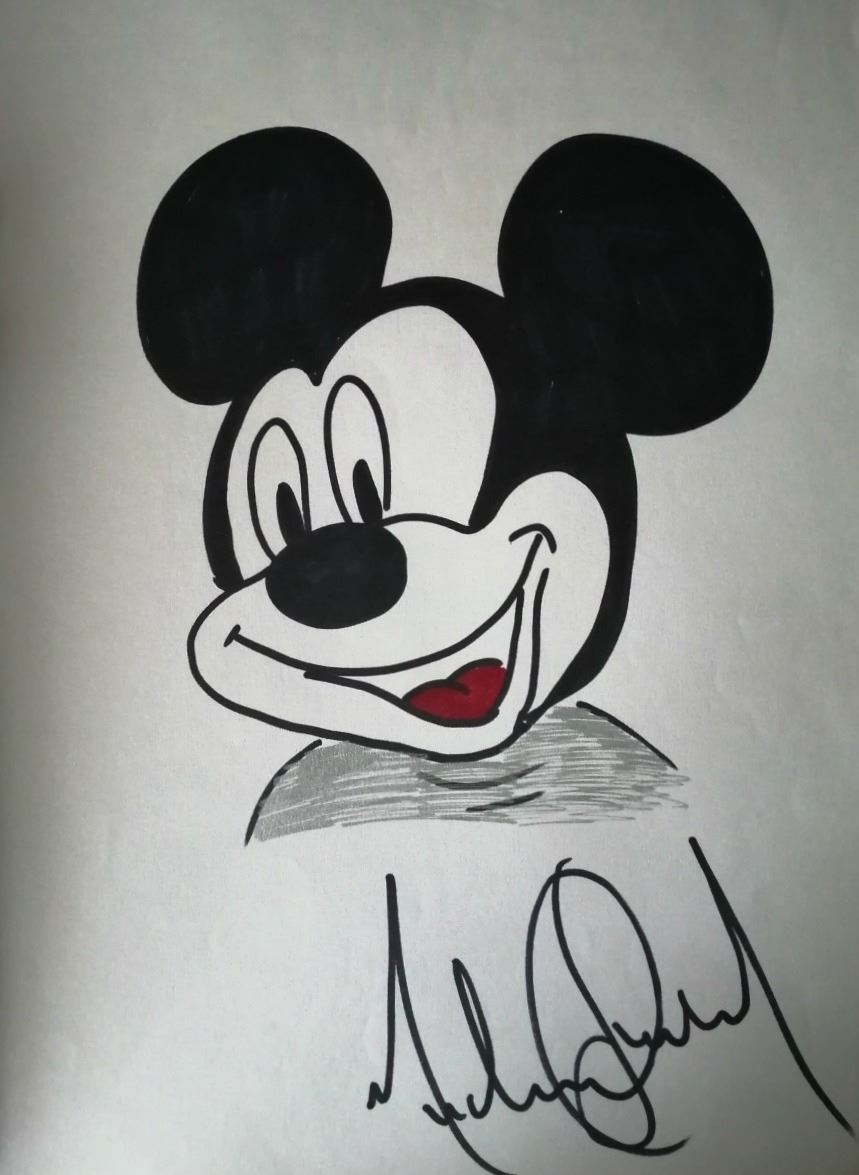 Mickey Mouse in a space suit. Drawn by Michael Jackson in felt tips, and boldly signed by the King of Pop in the bottom corner.