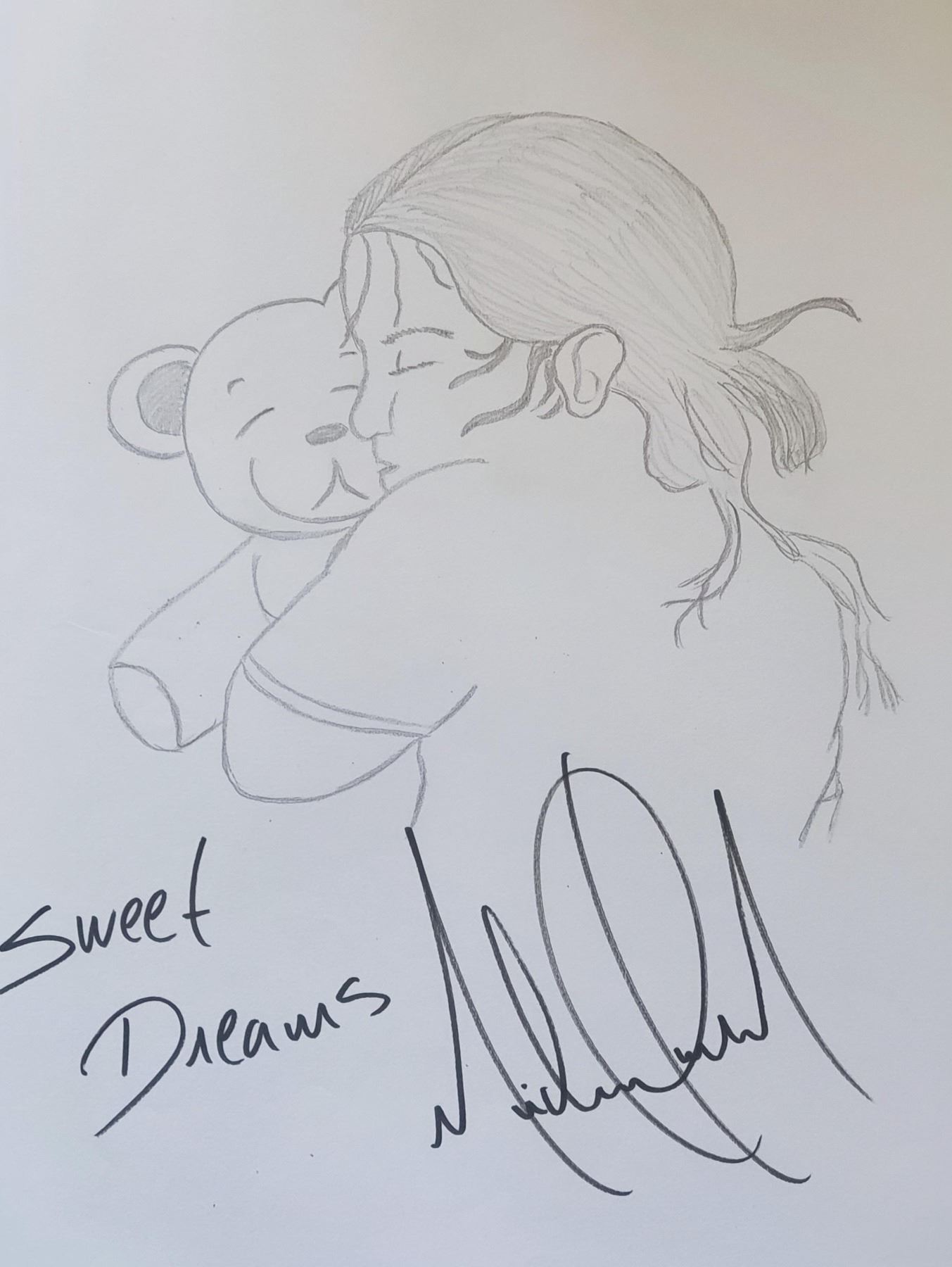 Hand drawn on A3 art paper in pencil and signed with words "Sweet dreams" by Michael Jackson. Supplied with coa.