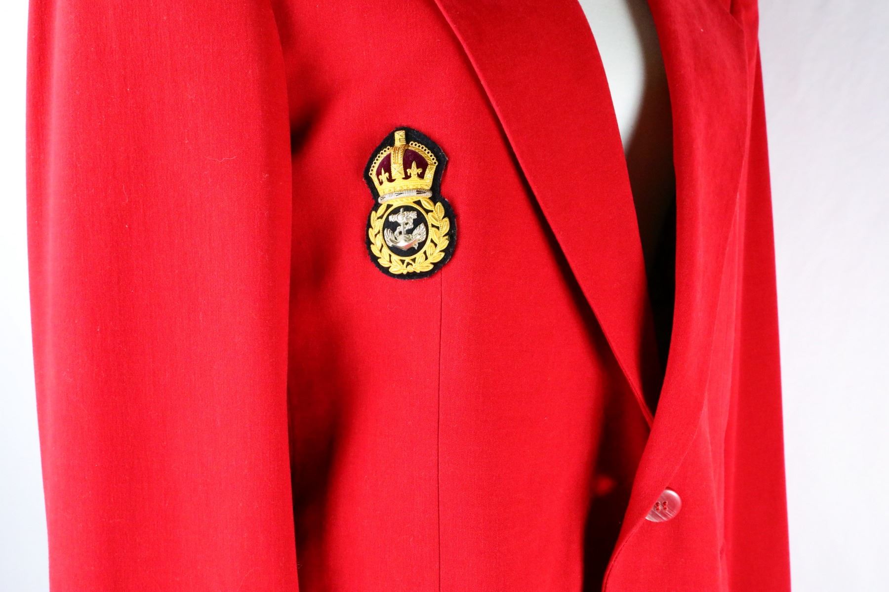 Michael Jackson's Personally Owned Custom Red Blazer Designed by Bill Whitten W/Letter of Provenance - This custom red blazer was personally owned and worn by the King of Pop, Michael Jackson. The red blazer is lined with gray lining and has been customized with a crown and anchor crest on the right chest. The interior of the jacket contains a handwritten "R3" in black ink and a sewn-in Bill Whitten label. Michael Jackson memorabilia is some of the most collectible celebrity memorabilia in the world, and pieces attributed to Bill Whitten can be considered at the top of the tier due to the rarity and quality of the items. This blazer will be accompanied by a letter of provenance from Andrew D. Lansky, who worked with Michael Jackson during his Bad Tour. Lansky gave Michael a special gift of an antique book series "The Life of Napoleon Bonaparte" for his 29th birthday, and Michael later left this blazer (along with other items) in Lansky's crew closet with the message "They are no longer Napoleonic to me. M.J." If you would like more information regarding the provenance or authenticity of this piece, please email brigitte@gwsauctions.com. Please note: The photograph picturing Michael in a similar red jacket is a reference photo.