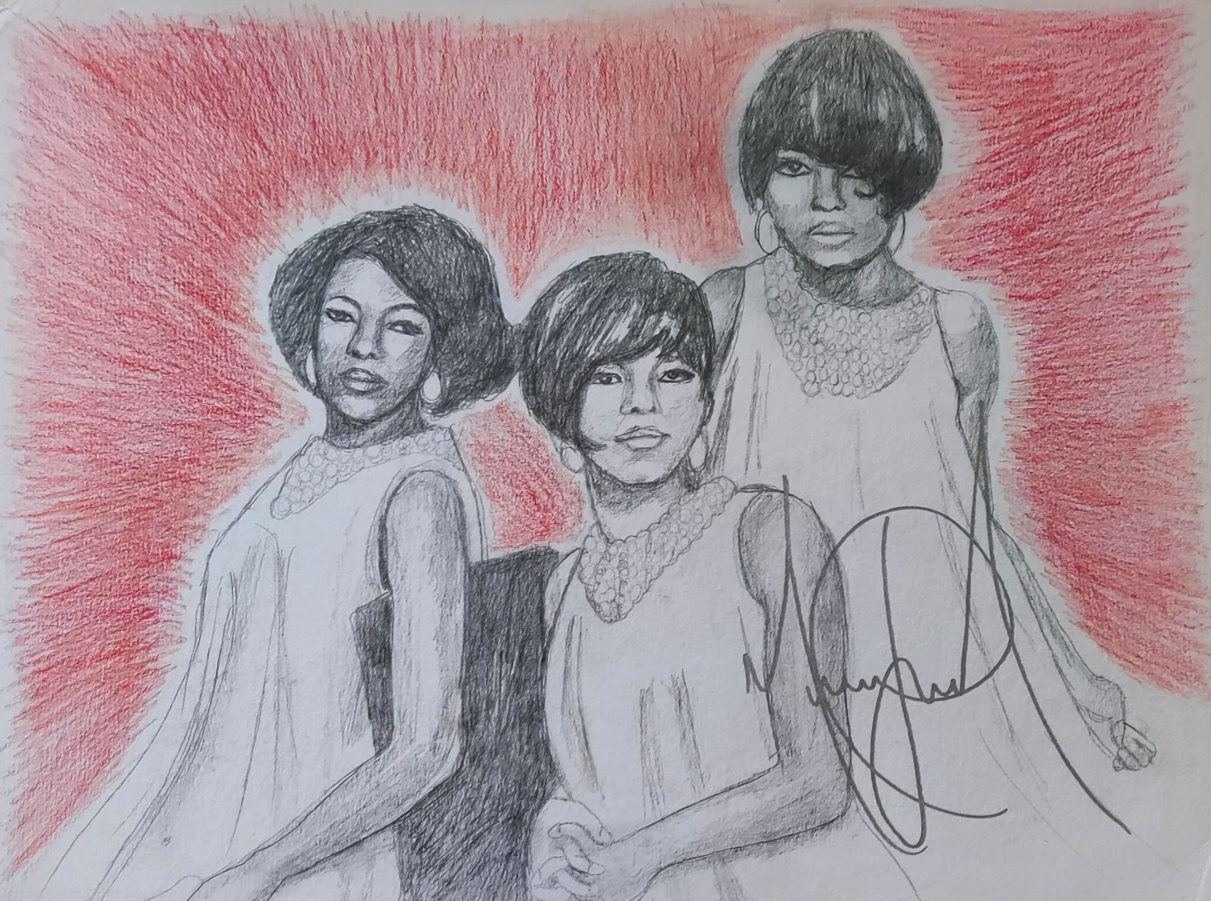 Realistic drawing of one of his idol's he looked up to as a kid: Diana Ross.