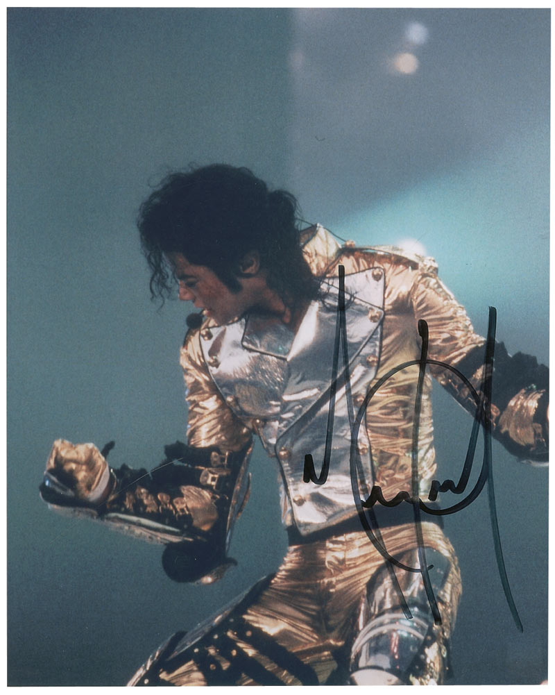 Color satin-finish 8 x 10 photo of Jackson on stage, signed in black felt tip. In fine condition. Accompanied by a certificate of authenticity from Roger Epperson/REAL.