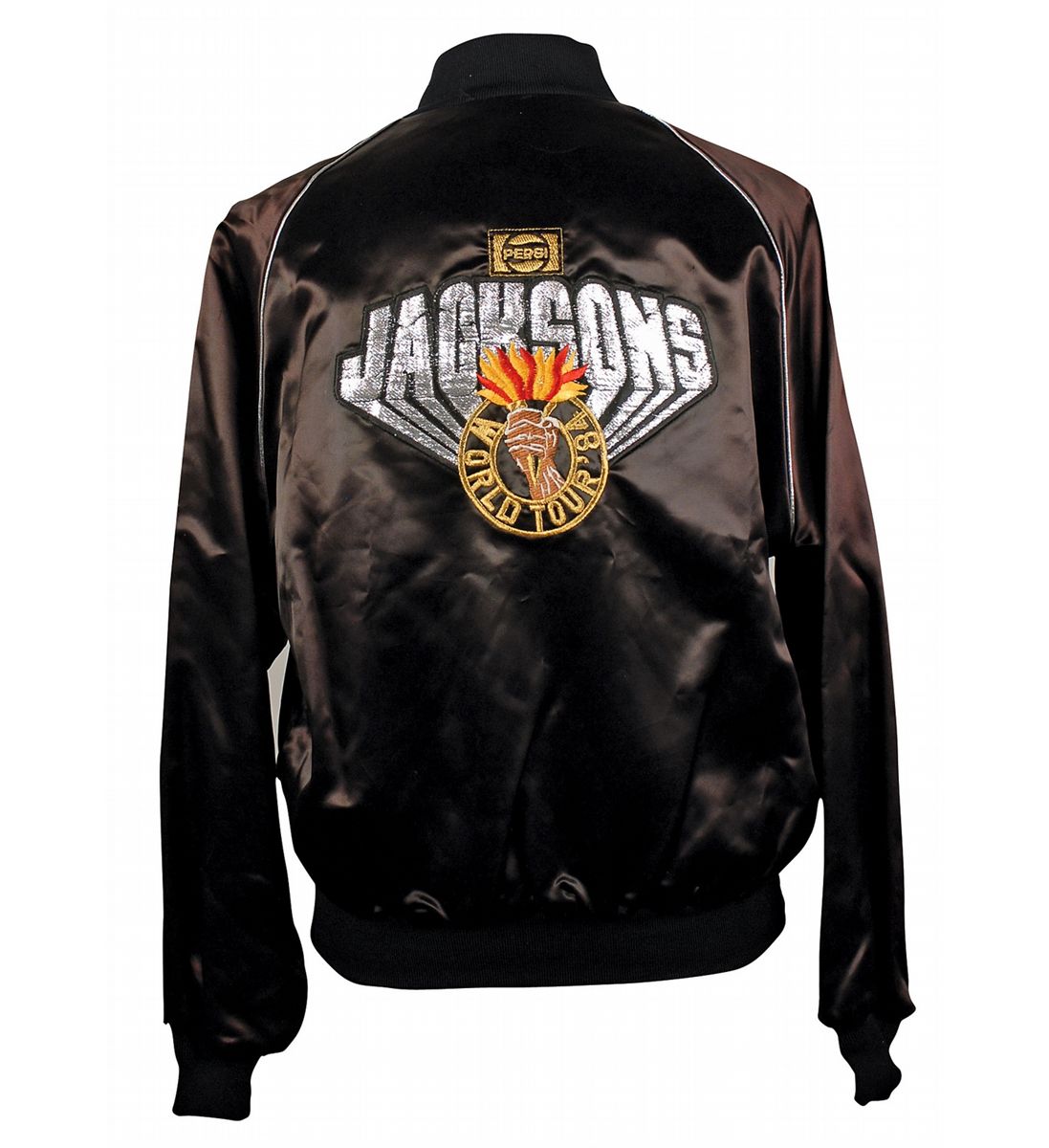 Brown satin jacket from Jackson’s 1984 Victory Tour, made by Upstream, bearing large “Jackson’s World Tour ’84” and Pepsi logos embroidered across the back. In fine, barely worn condition.