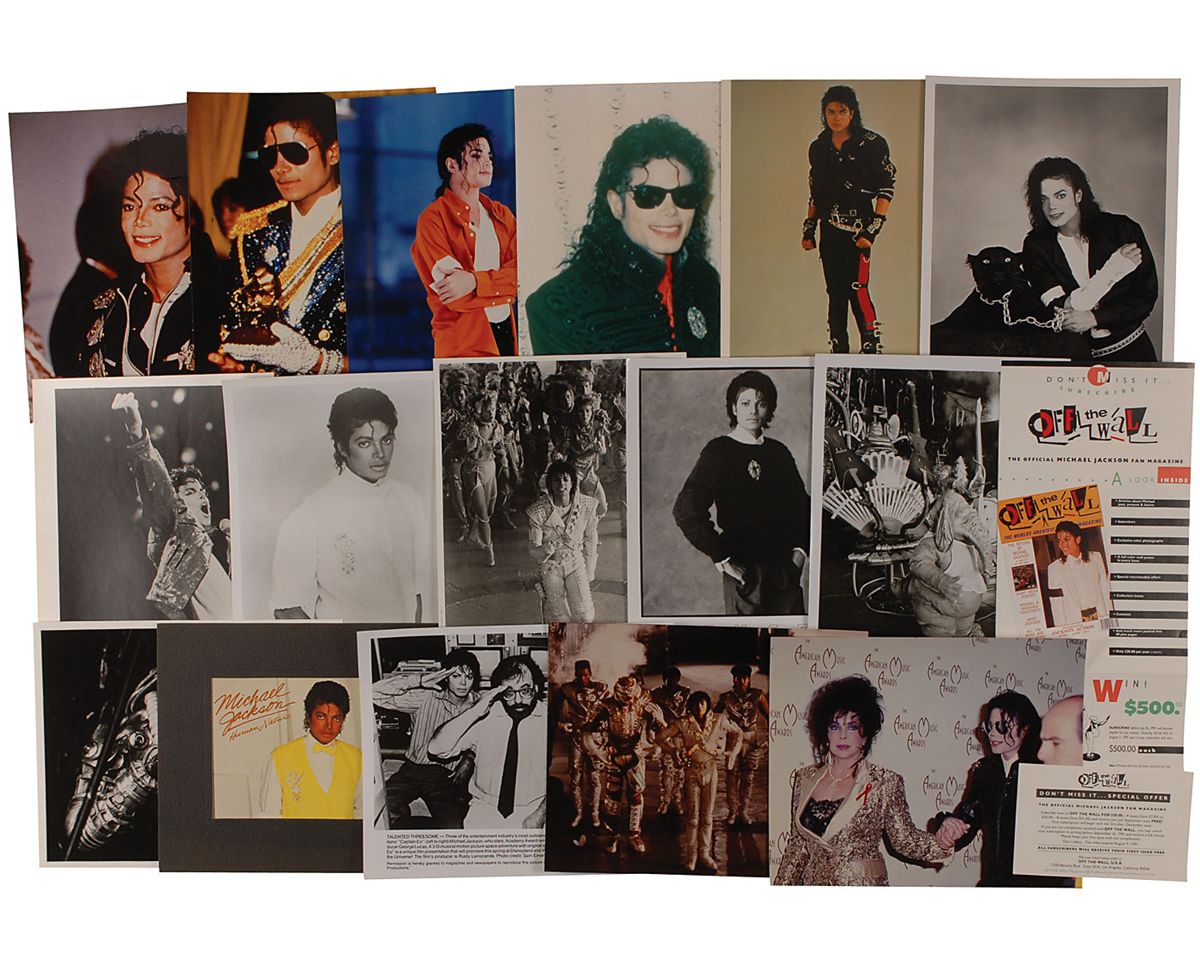 Collection of 16 unsigned photos, various finishes, most measuring 8 x 10 or 10 x 8, including eight color, from various points of Jackson’s career, including several from Captain Eo. In overall fine condition.