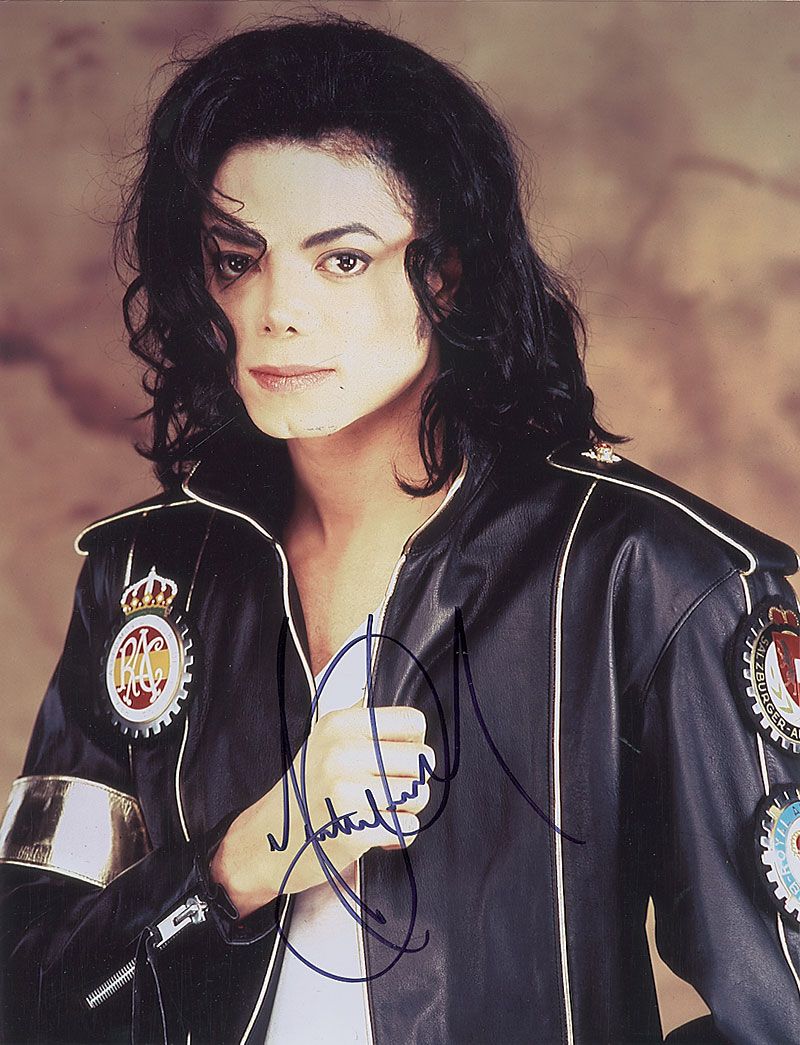 Color glossy 10.75 x 14 photo of Jackson wearing his ‘Dangerous’ jacket, signed in black felt tip. In fine condition. Accompanied by a certificate of authenticity from Roger Epperson/REAL.