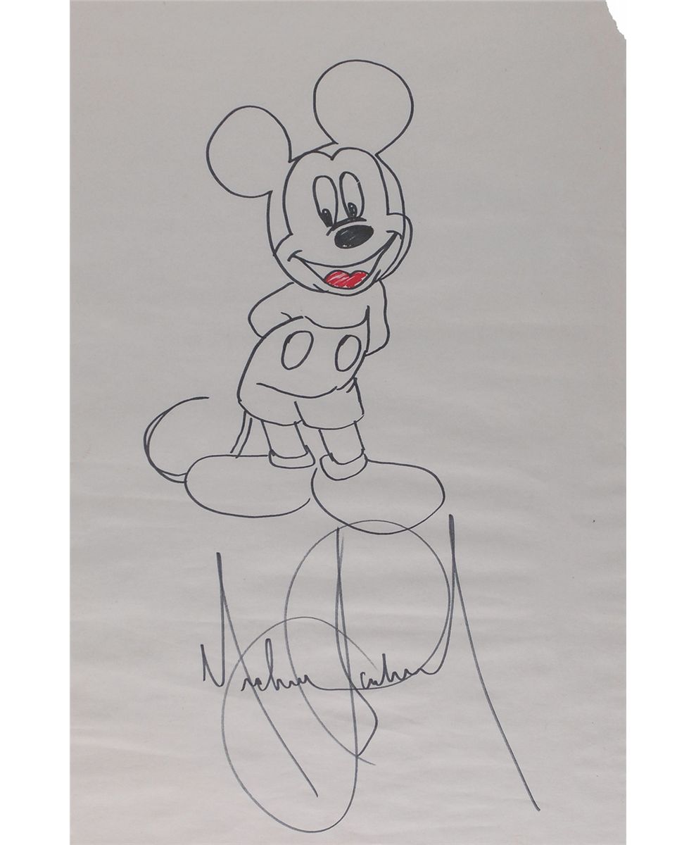Original signed full-length felt tip sketch of Mickey Mouse on an off-white 12 x 18 sheet, signed under the image by Jackson. In fine condition. Rolled.