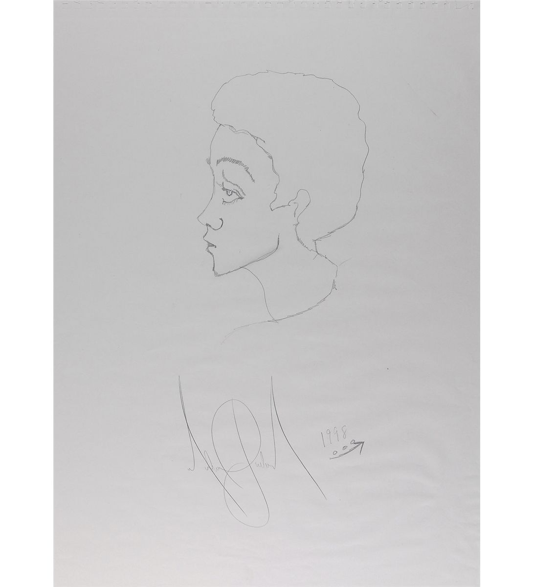 Original signed pencil sketch of a young boy in profile on an off-white 18 x 24.5 sheet of sketch paper, signed under the image in pencil, “Michael Jackson 1998,” adding an arrow with three dots above it next to his signature. In fine condition. Rolled.