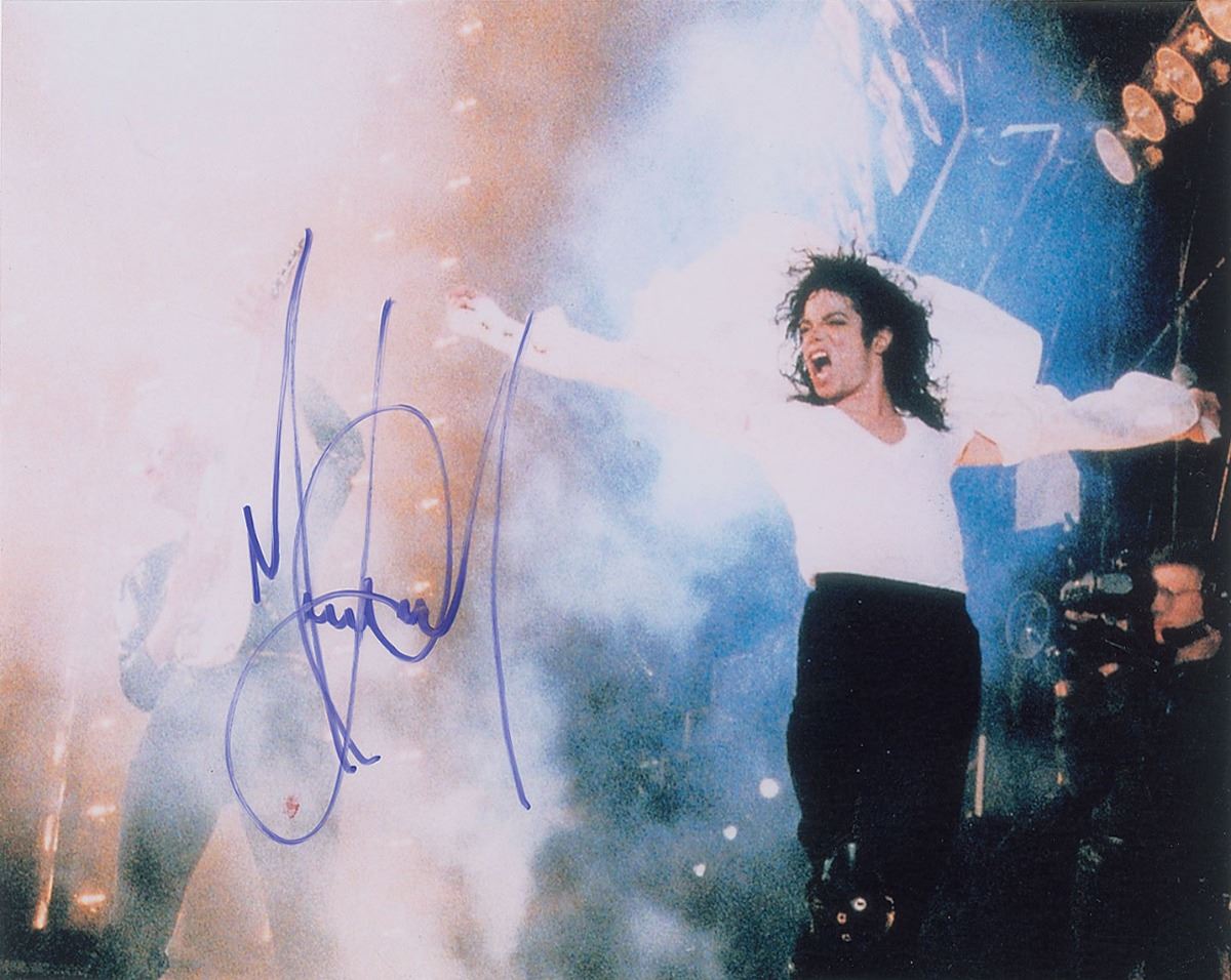 Color glossy 10 x 8 photo of Jackson during the shooting for his ‘Black or White’ video, signed in black felt tip. In fine condition.