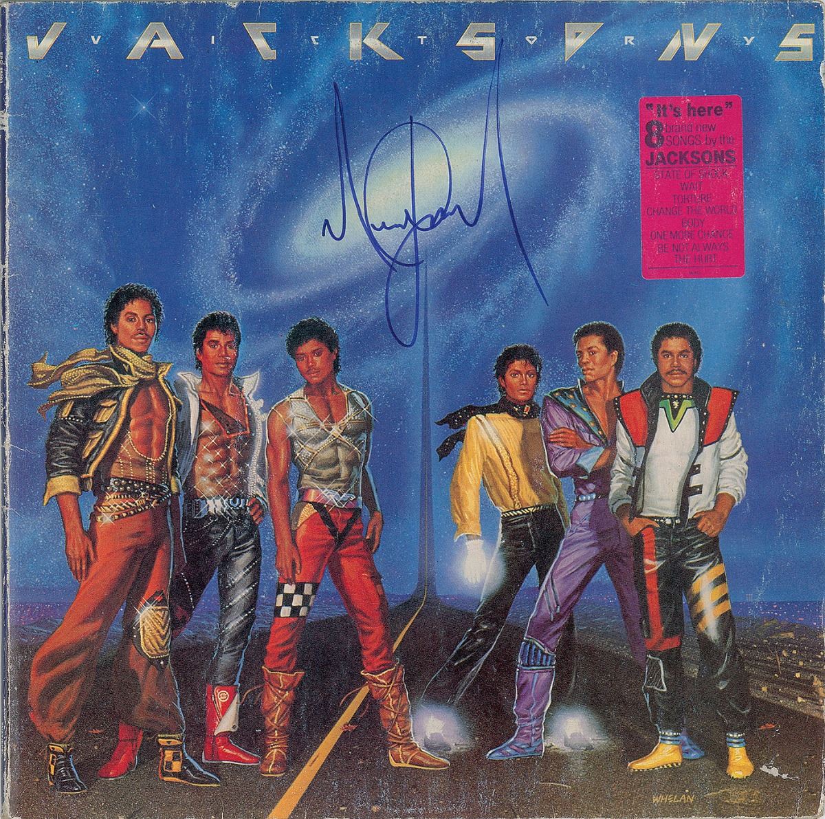 Victory album by the Jackson 5, signed on the front cover in blue felt tip by Michael Jackson. In fine condition. The record is included. Accompanied by a full letter of authenticity from REAL.