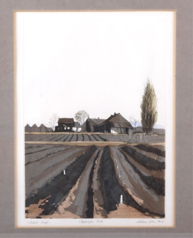 This lot features an excellent artists proof by Michael John Hunt titled "Asparagus Field". The frame measures 17" by 13.5" and the art is 11.5" by 8.5".