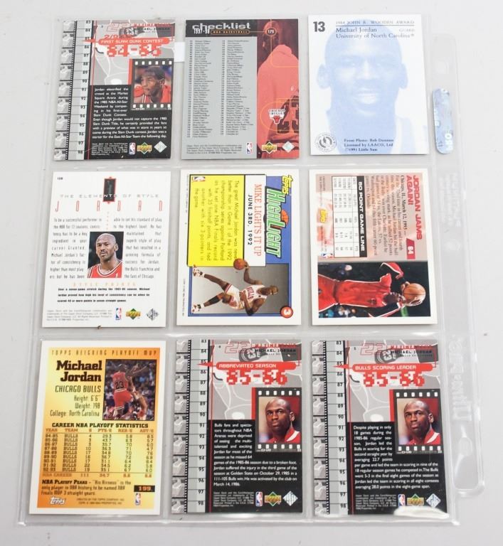 Lot of 9 NBA cards. Featuring Michael Jordan. From 1984-1999.