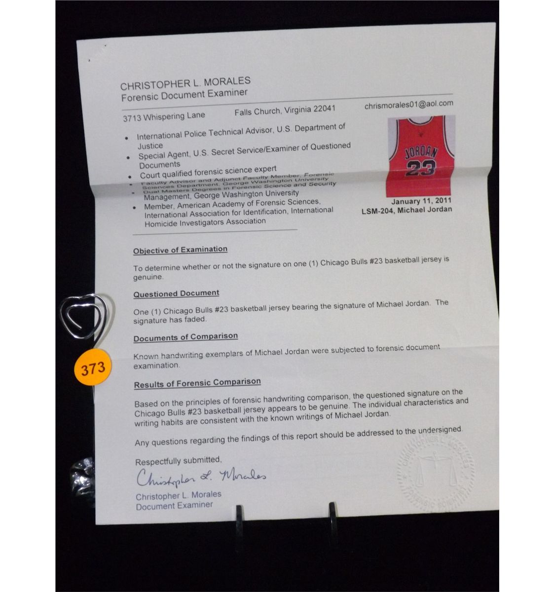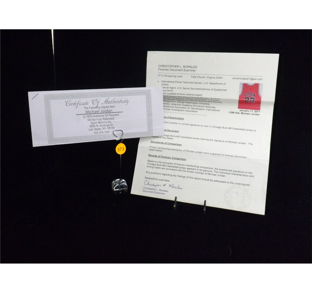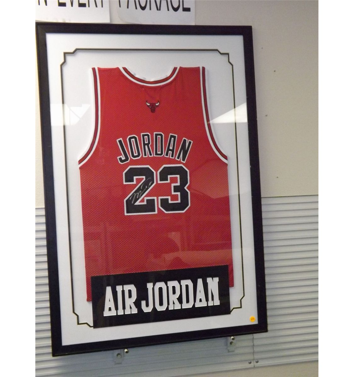 Michael Jordan Autographed Jersey. Framed Chicago Bulls #23 Basketball Jersey, Signed in the "2" in "23" with "Air Jordan" Laser-Matte. Appraised or estimated retail value $4000. COAs by Sport Memory and Christopher Morales. All Sales Final. Please see terms and conditions of auction.