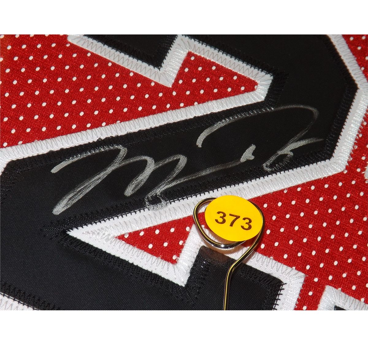 Michael Jordan Autographed Jersey. Framed Chicago Bulls #23 Basketball Jersey, Signed in the "2" in