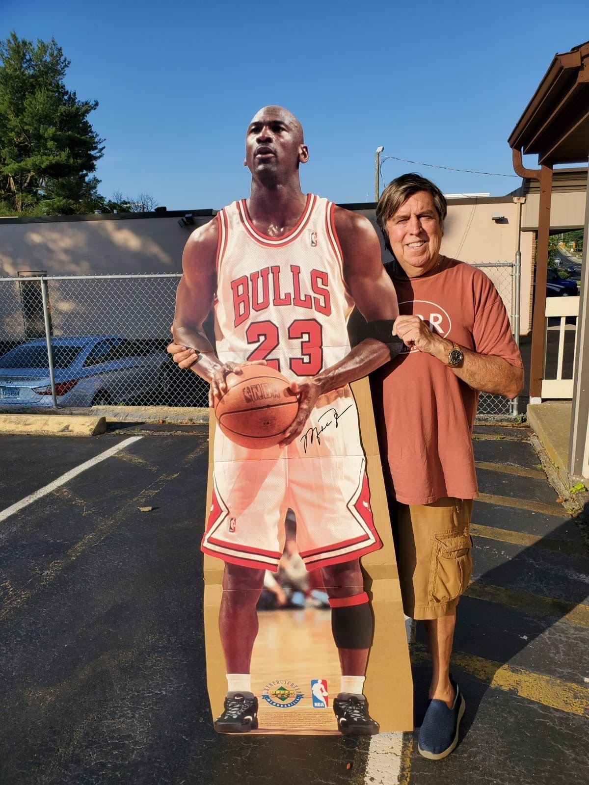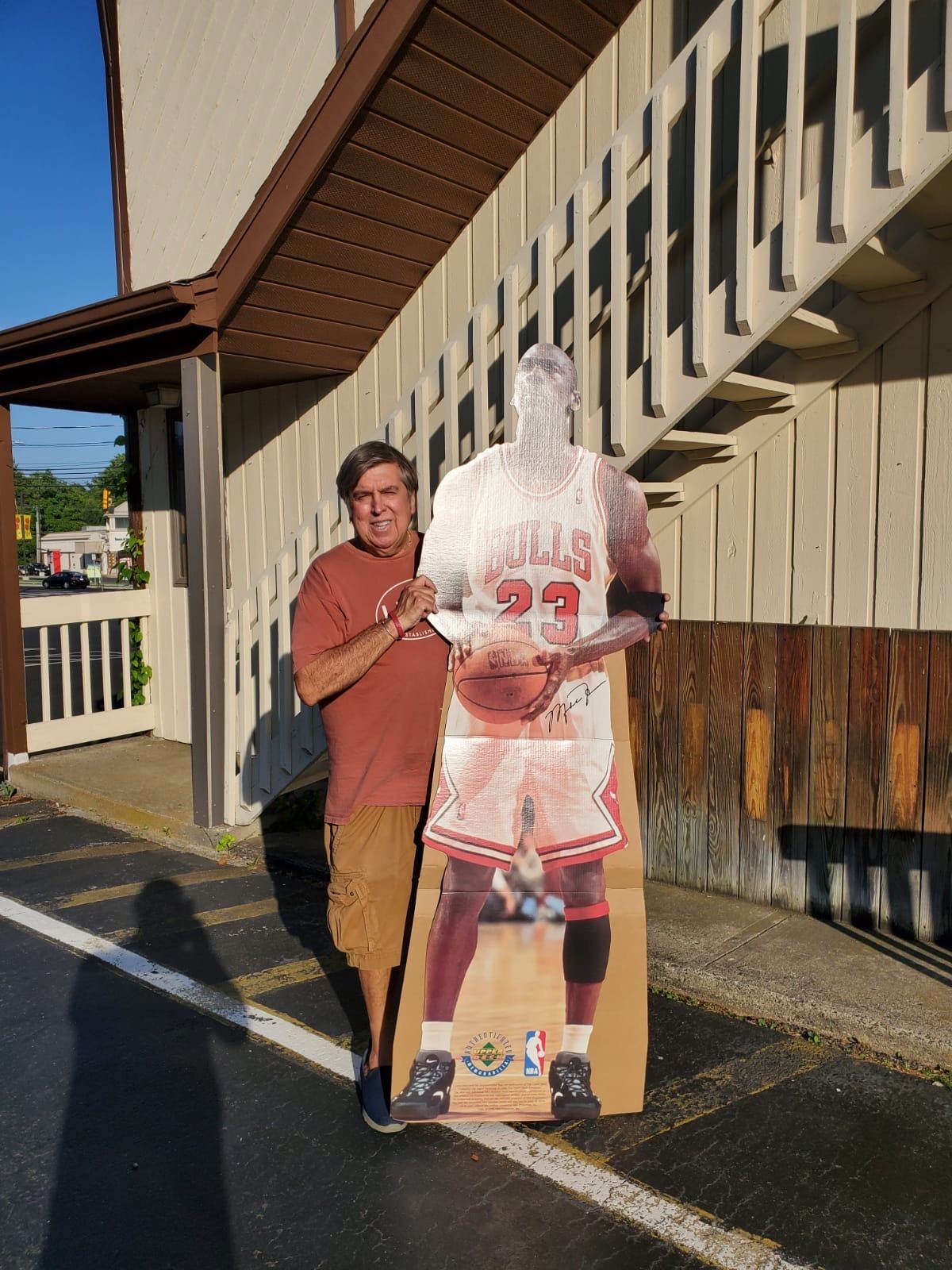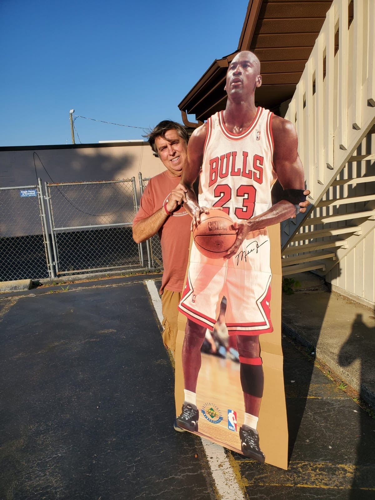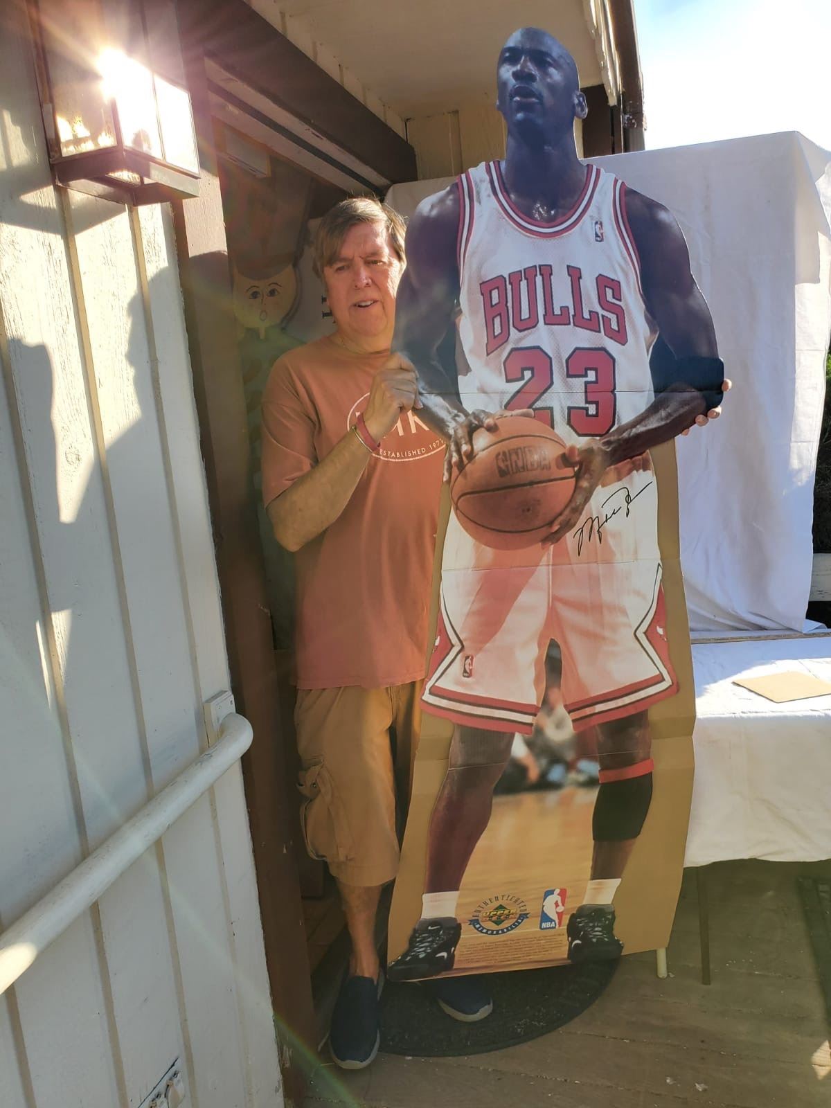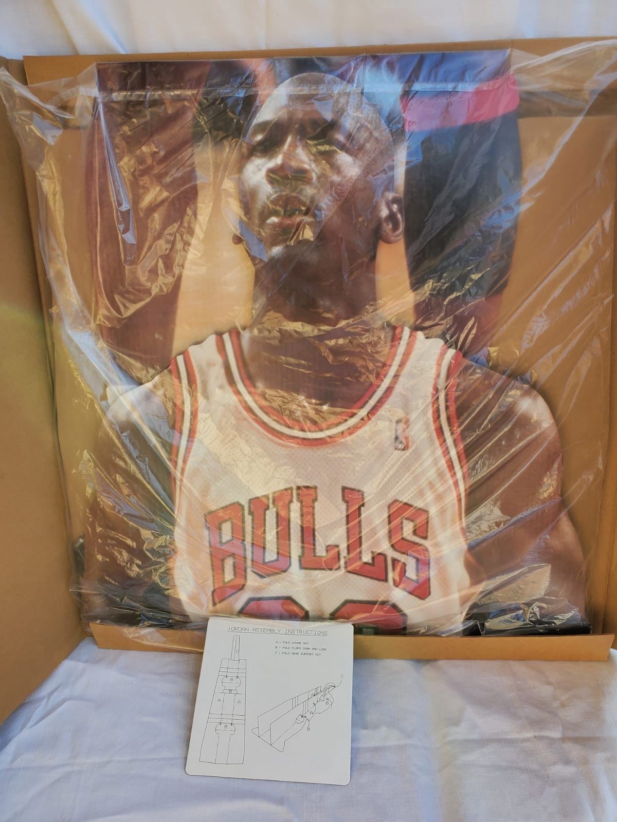 Signed cut out of Michael Jordan, owner used to meet with Michael Jordan after games and have all products signed.
