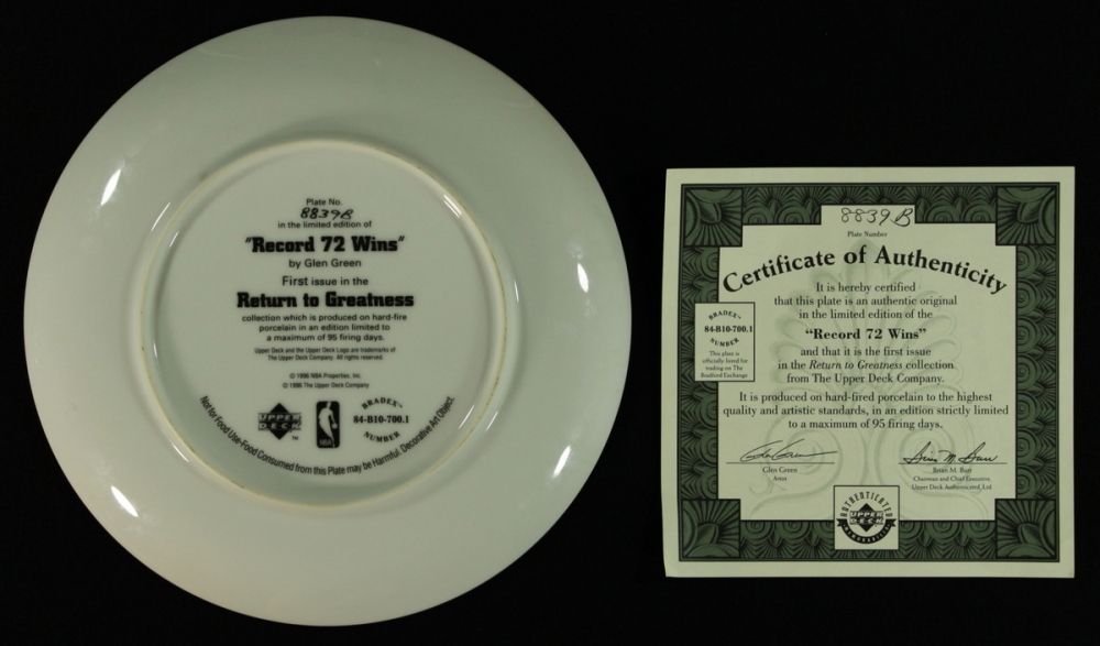 Michael Jordan Limited Edition 8" UDA Bradford Exchange Commemorative Plate: "Record 72 Wins"