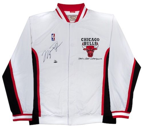 Michael Jordan Autographed 1993 Chicago Bull Home Warm Up Jacket Upper Deck Authenticated Limited to only 23 Signed.