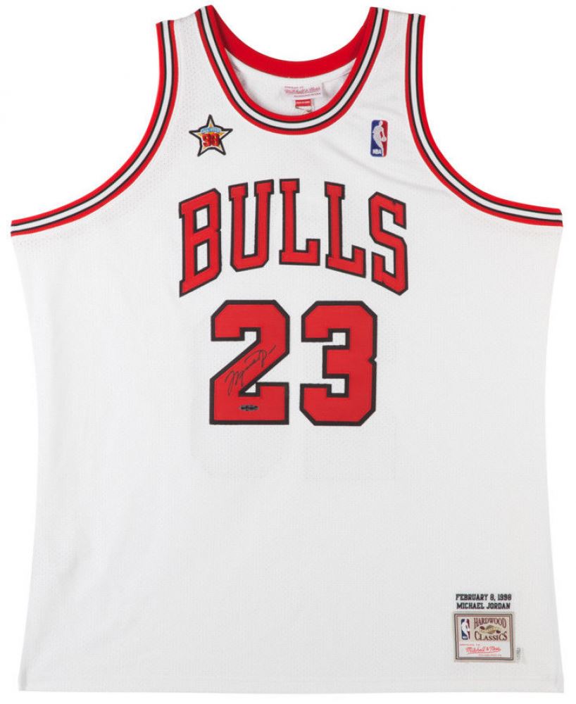 This is an authentic 1998 NBA All-Star Mitchell and Ness jersey hand signed by Michael Jordan. Michael Jordan went on to win his final NBA championship this same year, making this jersey an extremely valuable piece for your collection. Jordan has autographed this Mitchell Ness 1998 NBA All-Star Game jersey in black paint pen. His signature is deemed authentic by virtue of Upper Deck Authenticated Five-Step Process. Authentication: UDA COA. Includes certificate of authenticity and hologram. Jordan's signature is guaranteed authentic through the Upper Deck Authenticated serial numbered hologram system.