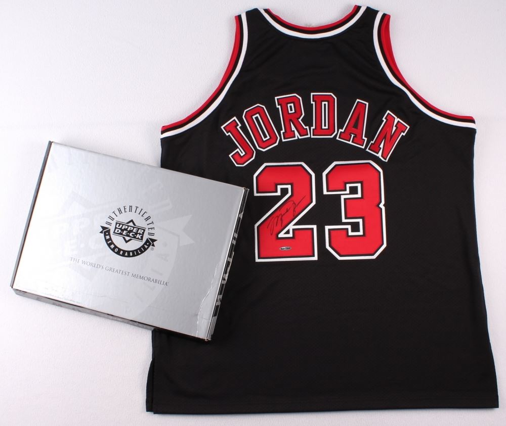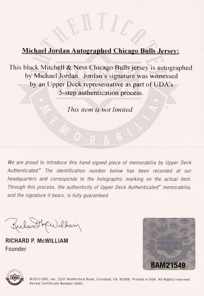 Mitchell & Ness authentic jersey. Everything sewn on, size 52 (2XL). Hand-signed in black felt-tip pen by Michael Jordan (Bulls, HOF). The autograph includes an official Upper Deck Authenticated (UDA) hologram and matching COA for authenticity purposes.