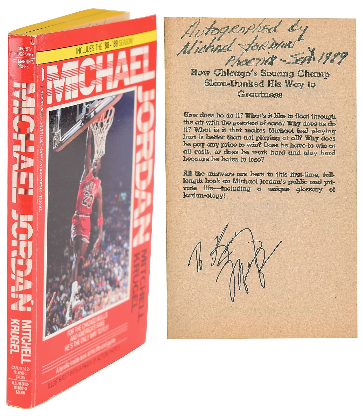 Signed book: Michael Jordan. NY: St. Martin's Press, 1989. Paperback, 4.25 x 6.75, 180 pages. Signed and inscribed on the opening page in black ink, "To Ken, Michael Jordan." In fine condition, with a collector's notation to top of signed page indicating that the autograph was obtained in Phoenix, Arizona, in September 1989, not long after Jordan won his first of five NBA MVP awards.