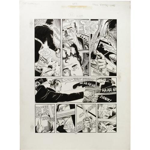 <B>Michael Kaluta and Russ Heath - The Shadow: Hitler's Astrologer, page 51 Original Art (Marvel, 1988). </B></I> Crossing blades with the Shadow is a terrible tactic, as a numb-skulled Nazi soon learns. For dramatic comic book storytelling, the team-supreme of Michael Kaluta and Russ Heath is hard to top. This page of pulp-fever perfection is drawn on illustration board and has an image area measuring 11" x 15", and the art is in Excellent condition.<BR><BR><b>Shipping:</b> Flat Material, Large (<a target="_blank" href="http://www.heritageauctions.com/common/shipping.php">view shipping information</a>)