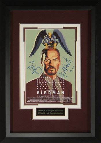 Birdman or (The Unexpected Virtue of Ignorance), commonly known simply as Birdman, is a 2014 American satirical black comedy-drama film directed by Alejandro G. Inarritu. The film stars Michael Keaton with a supporting cast of Zach Galifianakis, Edward Norton, Andrea Riseborough, Amy Ryan, Emma Stone, and Naomi Watts. The story follows Riggan Thomson (Keaton), a faded Hollywood actor best known for playing the superhero "Birdman", as he struggles to mount a Broadway adaptation of a short story by Raymond Carver. The film won the Academy Award for Best Picture, along with Best Director, Best Original Screenplay, and Best Cinematography from a total of nine nominations, tying it with The Grand Budapest Hotel for the most nominated and awarded film at the Academy's 87th annual awards ceremony with four wins per film. It also won Outstanding Cast in a Motion Picture at the 21st Screen Actors Guild Awards, as well as Best Actor in a Musical or Comedy for Keaton and Best Screenplay at the 72nd Golden Globe Awards. This is an signed Publicity Masterprint 11x17 inch movie poster with museum Quality Custom Black Framing as shown to an overall size of 22x30. Michael Keaton and Alejandro G. Inarritu have hand signed this poster. The perfect addition to complement any Home Theater Collection. Witnessed, Examined, and Certified Authentic (Lifetime) by Millionaire Gallery, Inc.