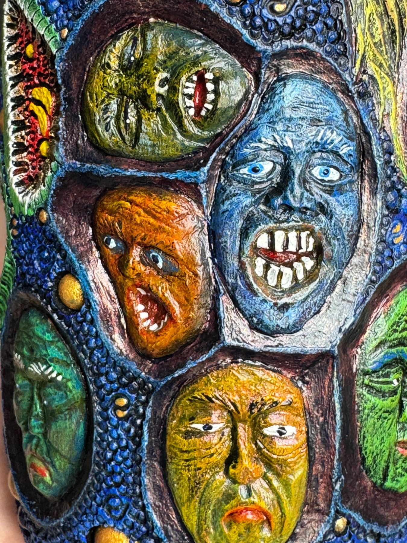 In this world of many cultures and skin colors, I believe we can, if we want to, coexist. As these faces show some are less happy than others. If we all have come from the single cells of the past then maybe fully formed humans can reform into a complete community.