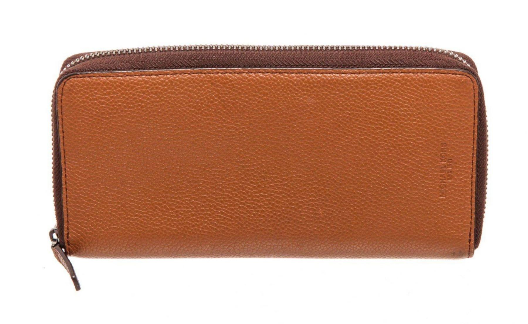 Michael Kors brown leather Jet Set wallet with silver tone hardware, single pocket at back, embossed logo at front, brown leather and canvas interior lining, five interior compartments; one with zip closure, eight cardholder slots and overall zip around closure. Measurements: Length: 8.6 in / 22 cm Width: 1 in / 3 cm 4.6 in / 12 cmCONDITION: Pre-Owned Good overall, please see photographs for detail.