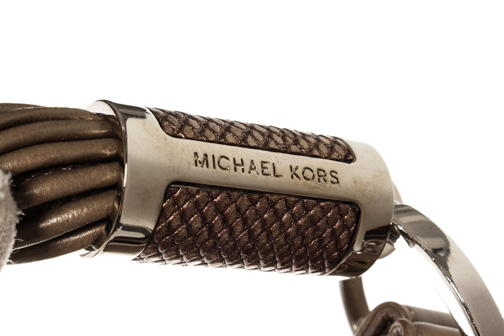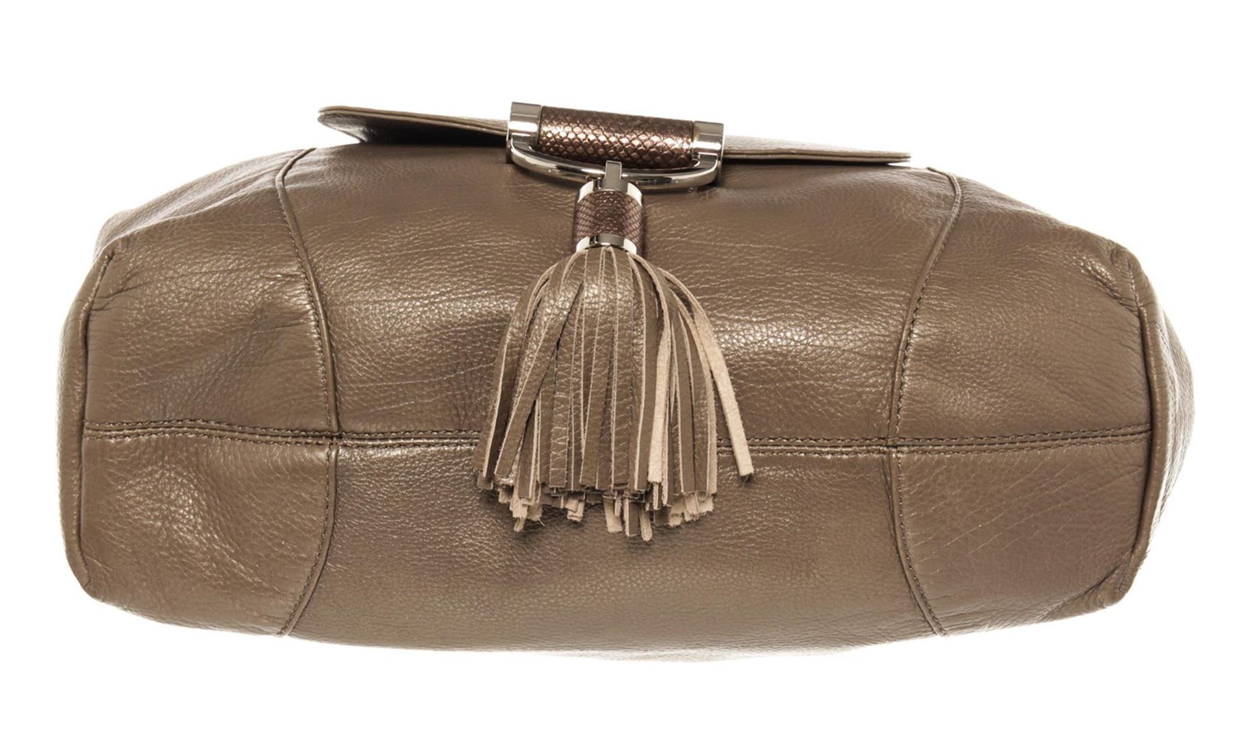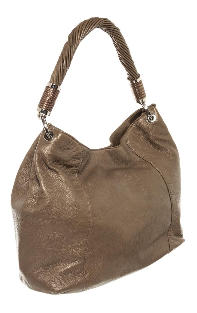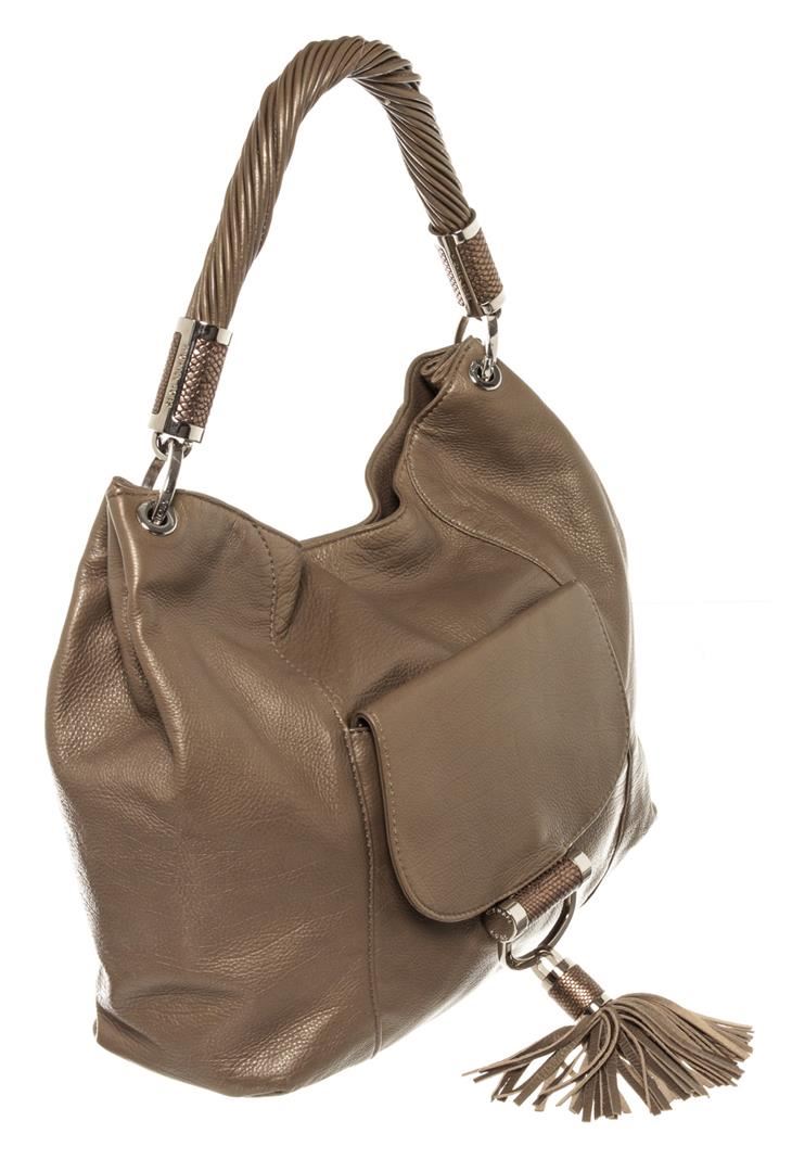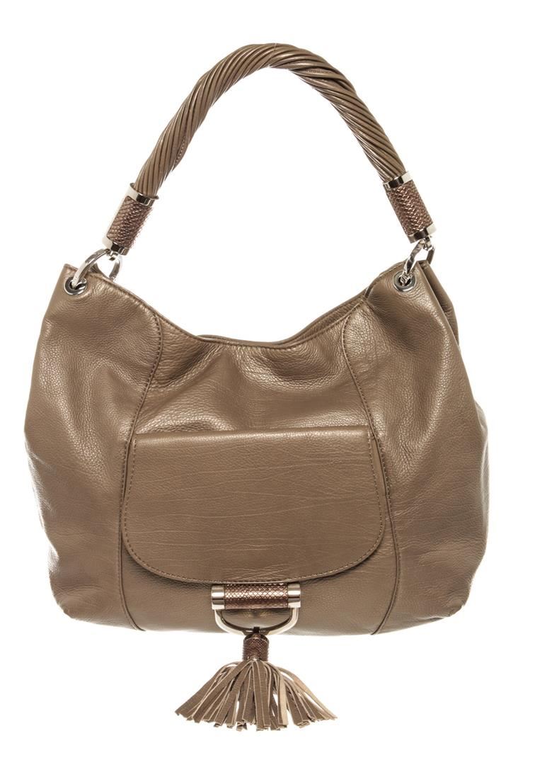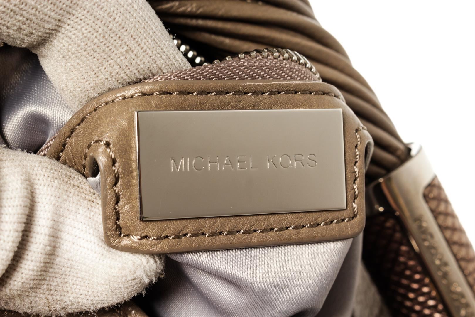 Michael Kors Gray Leather Tonne Hobo Bag with Tassel. Please see photos and description for all available information! Grey leather Michael Kors Tonne hobo bag with silver-tone hardware, single rolled shoulder strap, metallic snakeskin trim at zipper pull